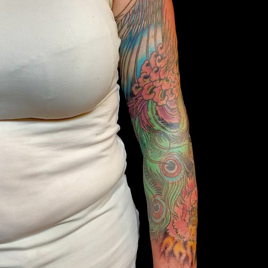 This limited edition digital print captures the essence of rebirth and transformation through a hand-drawn illustration originally created in ink and colored pencil for a large-scale tattoo. Each line holds deep intention, tracing the mythic journey of the phoenix from ashes to ascension.