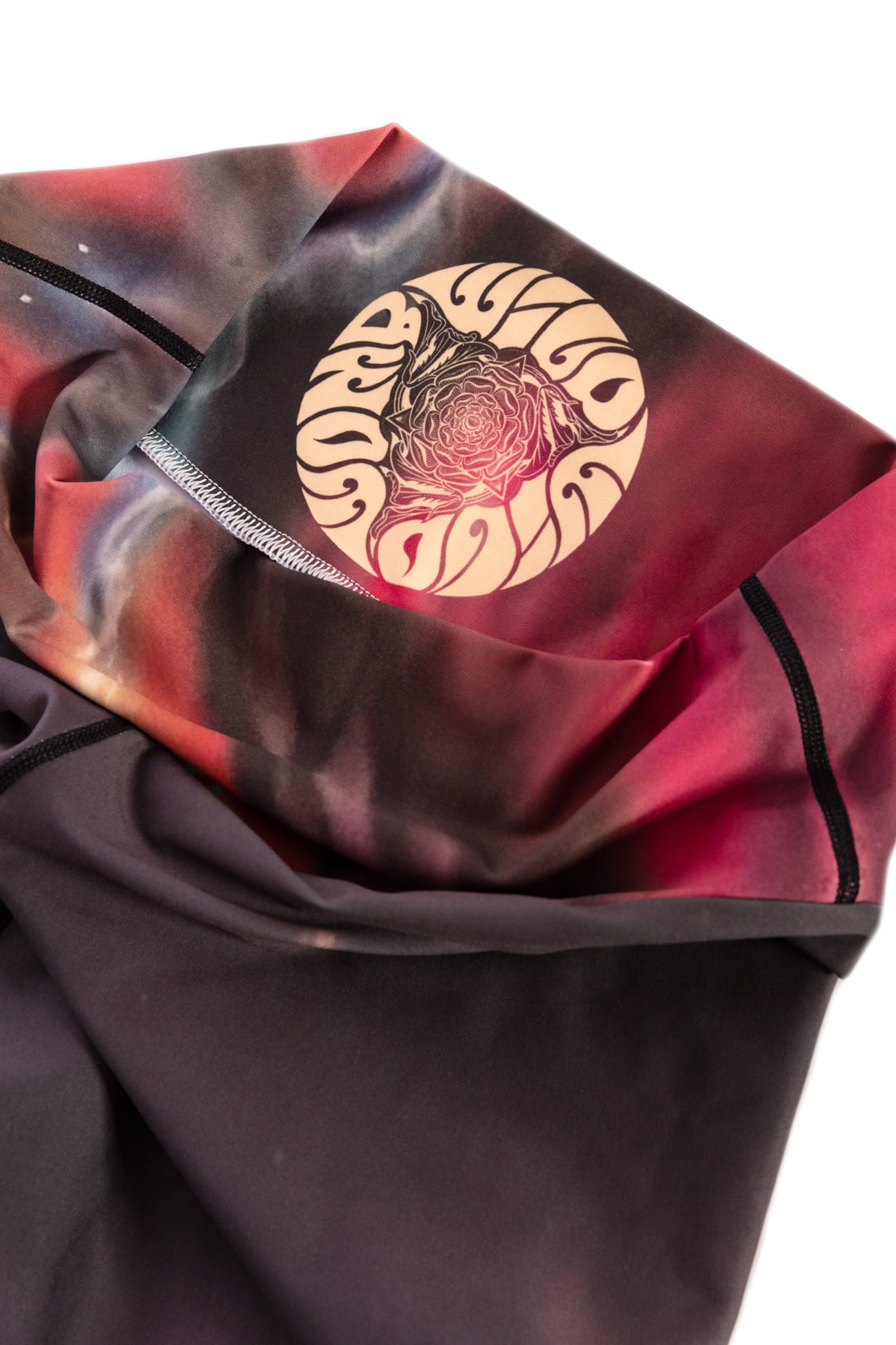 Through high-end sublimation printing, the actual photograph of the painting is transferred directly onto the fabric, preserving the intricate brushwork, symbolism, and luminous aura of the original. The result is a pair of leggings that holds fifth-dimensional depth—telling a story with every movement.